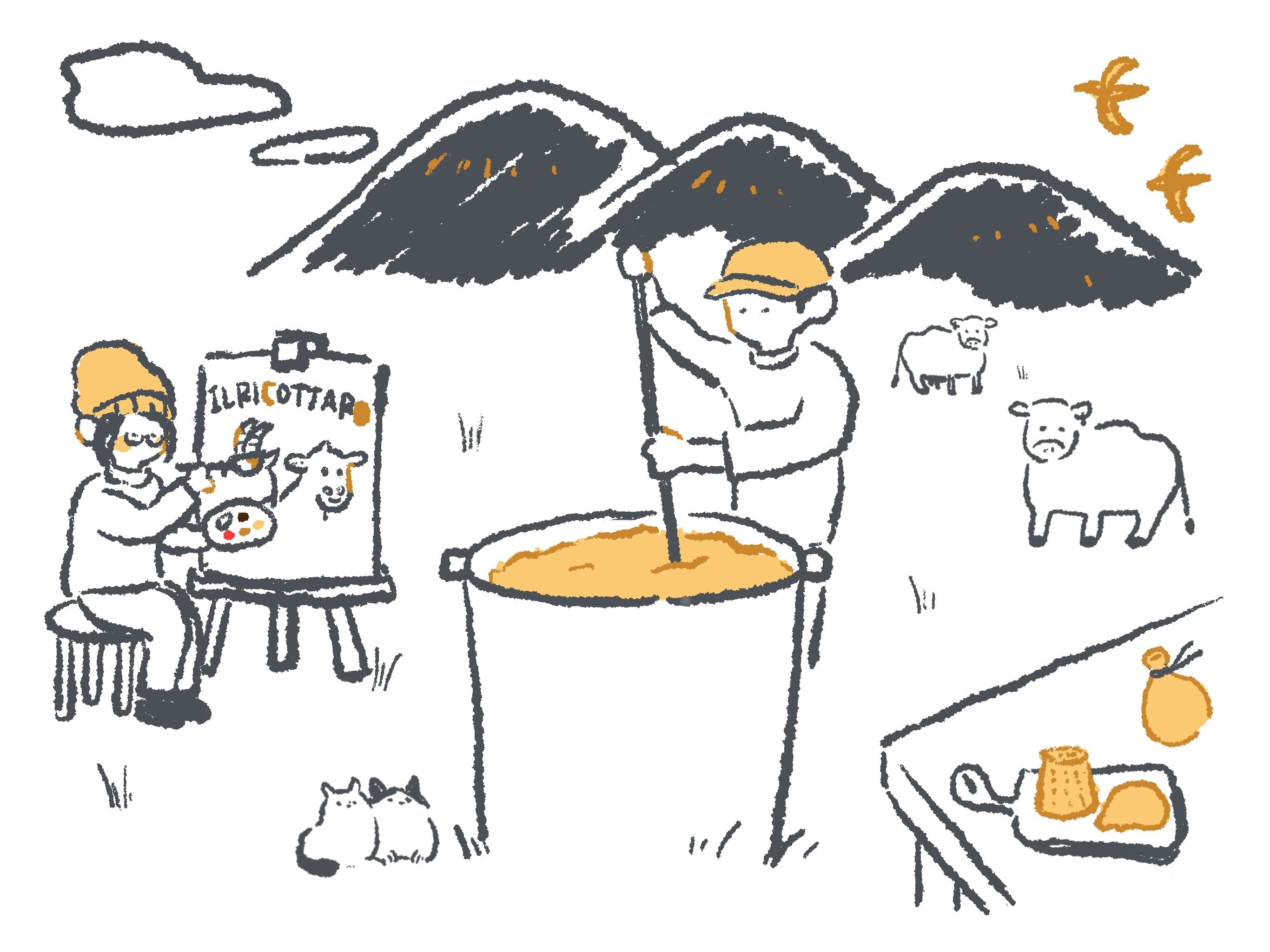 イタリアで学んだのはその『パッショーネ』。チーズやリコッタが農民たちの生活を支える保存食であった時代から、傷みやすいミルクをよりおいしく食べる為に紡がれてきた生きる知恵。非効率的と言われ今では失われつつある製法。それらを愛し、受け継ぐイタリア人たちがいます。彼らが共通して伝えてくれた言葉『パッショーネ』(情熱)。この情熱から学び、蒜山の森から僕も静かなる情熱を表現しています。